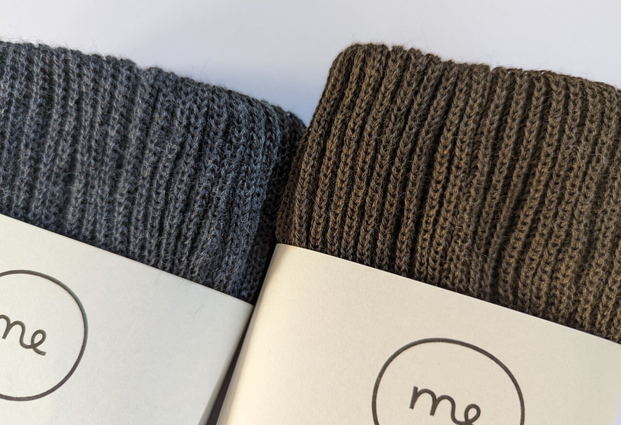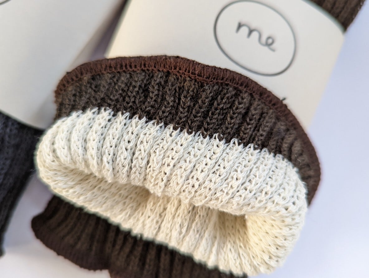 肌に触れる内側はシルク、外側は保湿性の高いウールを使用した二重編みの足首ウォーマー。