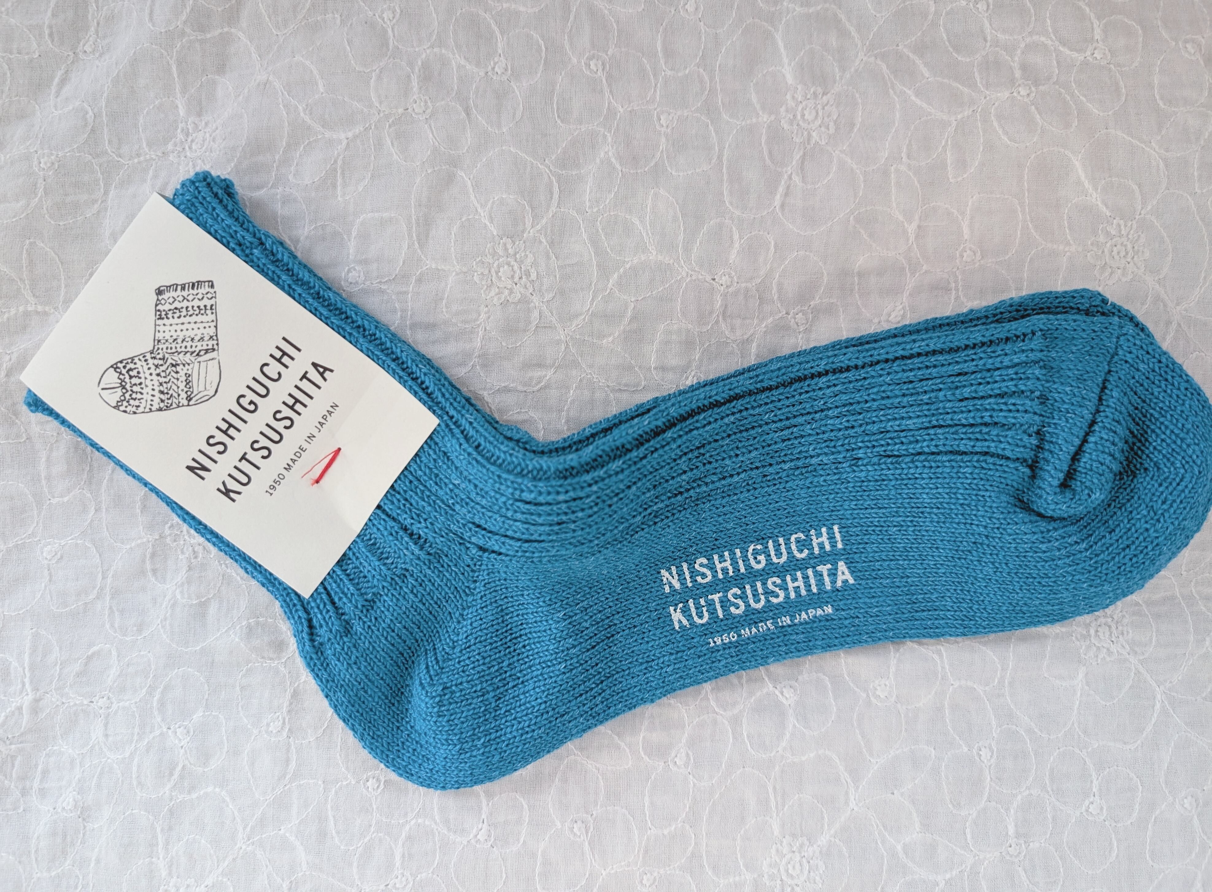 リネン100%の色を使用したリブソックス。通気性・発散性が高く蒸れにくい履き心地です。